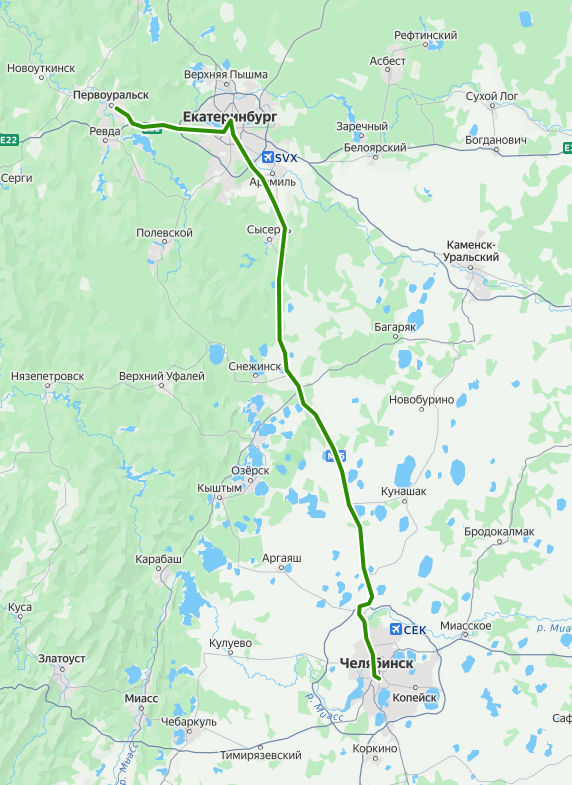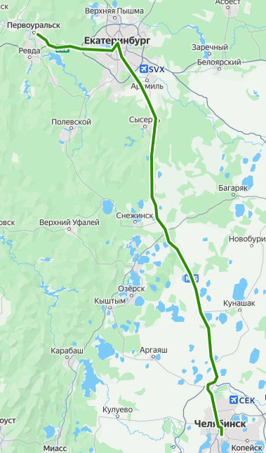 Первоуральск → Екатеринбург → Челябинск ≈ 265,5 км