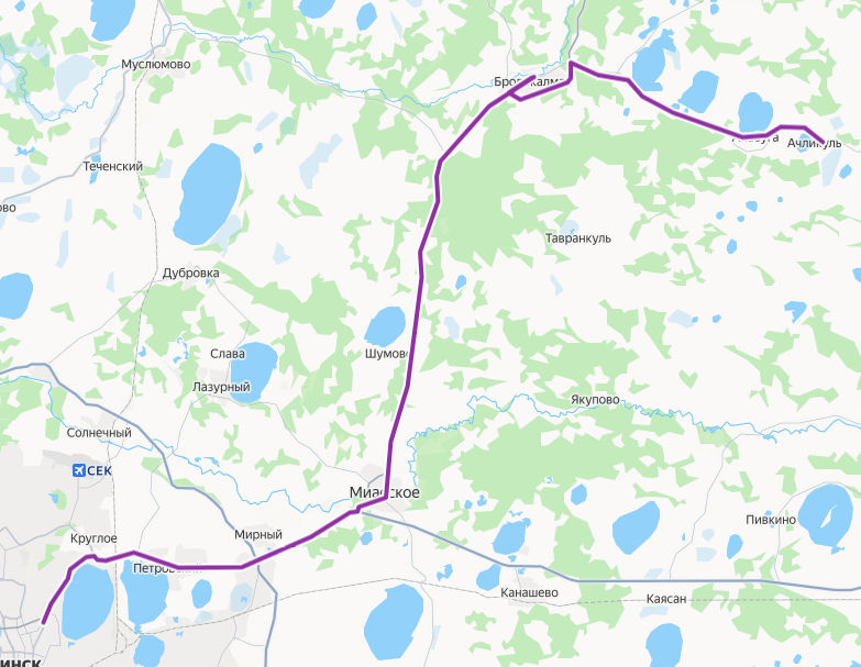 Челябинск → Ачликуль ≈ 102 км