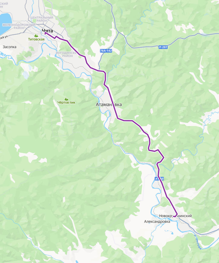 НОВОКРУЧИНИНСКИЙ, Станция Новая → Новокручининский → Лесхоз → Привоз → Новокручининский, Магазин Точка → Кручина → поворот на сады Восток → Атамановка → Геолог → Кафе Анастасия → Сады Горный → Никишиха → поворот на сады Радуга → Песчанка → Войсковая улица → Рембат → Олень → по требованию → Силикатный завод → МРЭО ГИБДД → Профлицей 2 → Магазин Океан → Факультет строительства и экологии → Магазин Удачи → Магазин Угловой → Дом книги → ЧИТА, Автовокзал