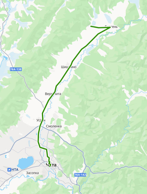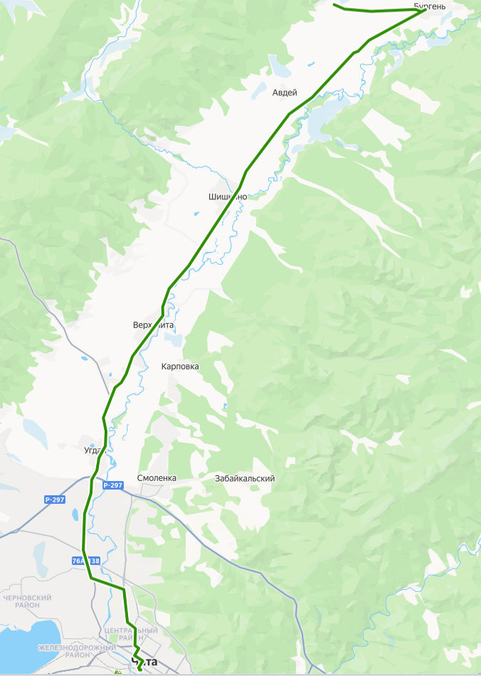 Чита → Подволок ≈ 54,95 км