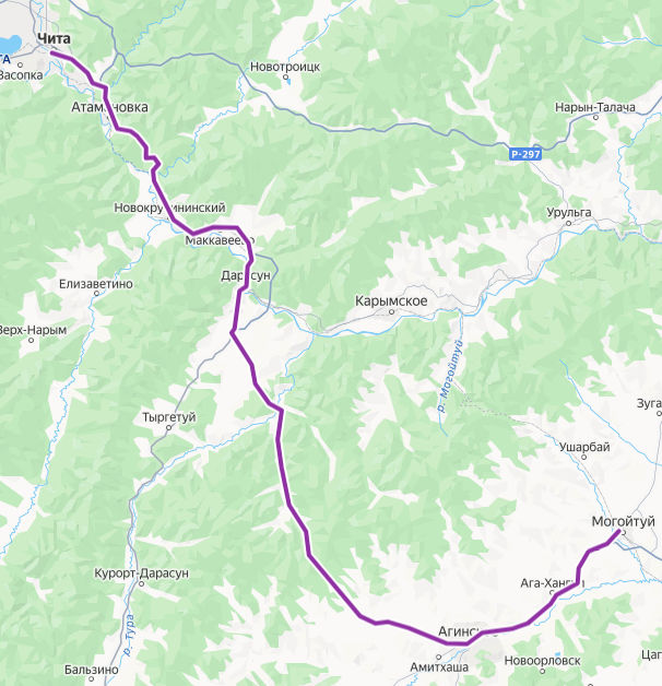 ЧИТА, Автовокзал → Атамановка → Дарасун, Автокасса → Школа 1 → Магазин КП → Дарасун, ул. Заречная → Жимбира → Лесозавод → Кордон Зымка → Аргалей → Агинское, Автостанция → Ага-Хангил → МОГОЙТУЙ, Автовокзал