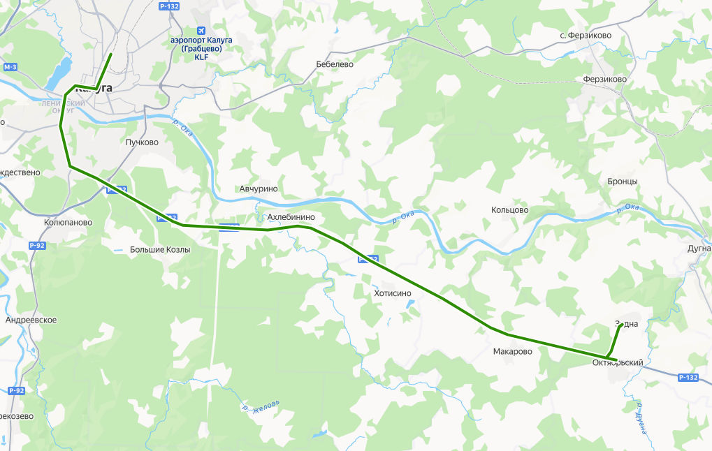 Калуга → Зудна ≈ 49,3 км
