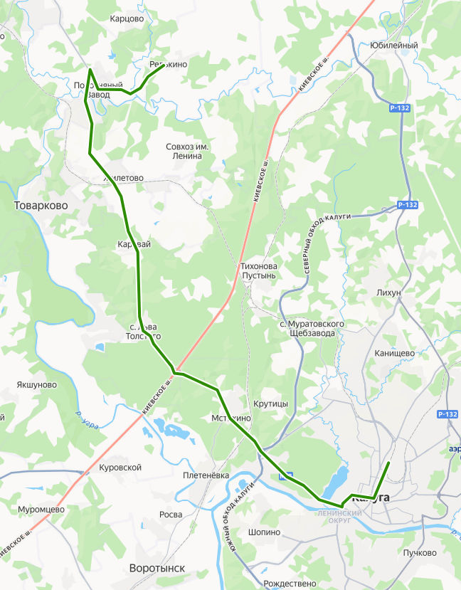 Калуга → Редькино ≈ 43,4 км