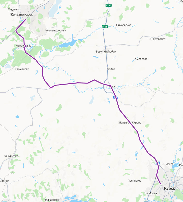 Курск → Железногорск ≈ 104 км