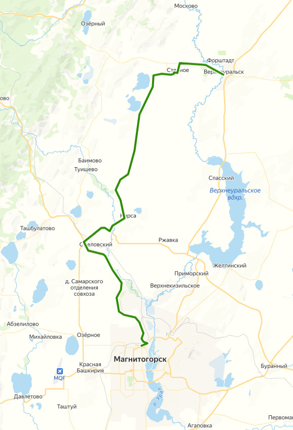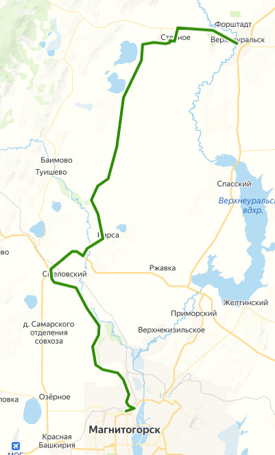 Магнитогорск → Верхнеуральск ≈ 78,45 км