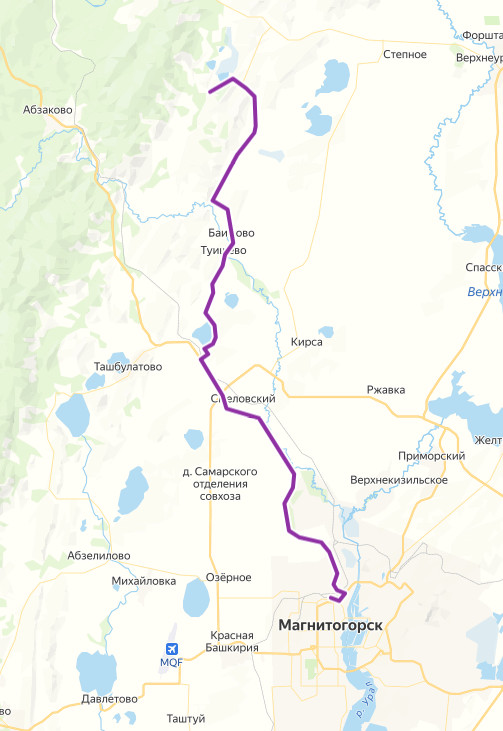 Магнитогорск → Баимово → Аслаево ≈ 63,45 км
