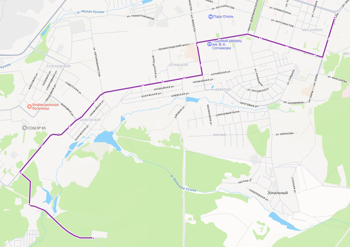 Пихтовые горы → Туберкулезная больница ≈ 9,33 км