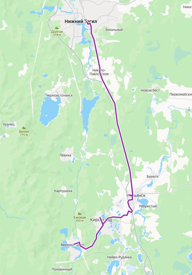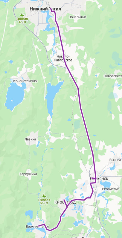 Верхний Тагил → Нижний Тагил ≈ 84,65 км