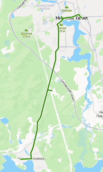 Нижний Тагил → Черноисточинск ≈ 26,27 км