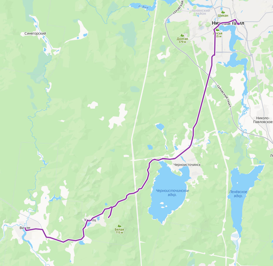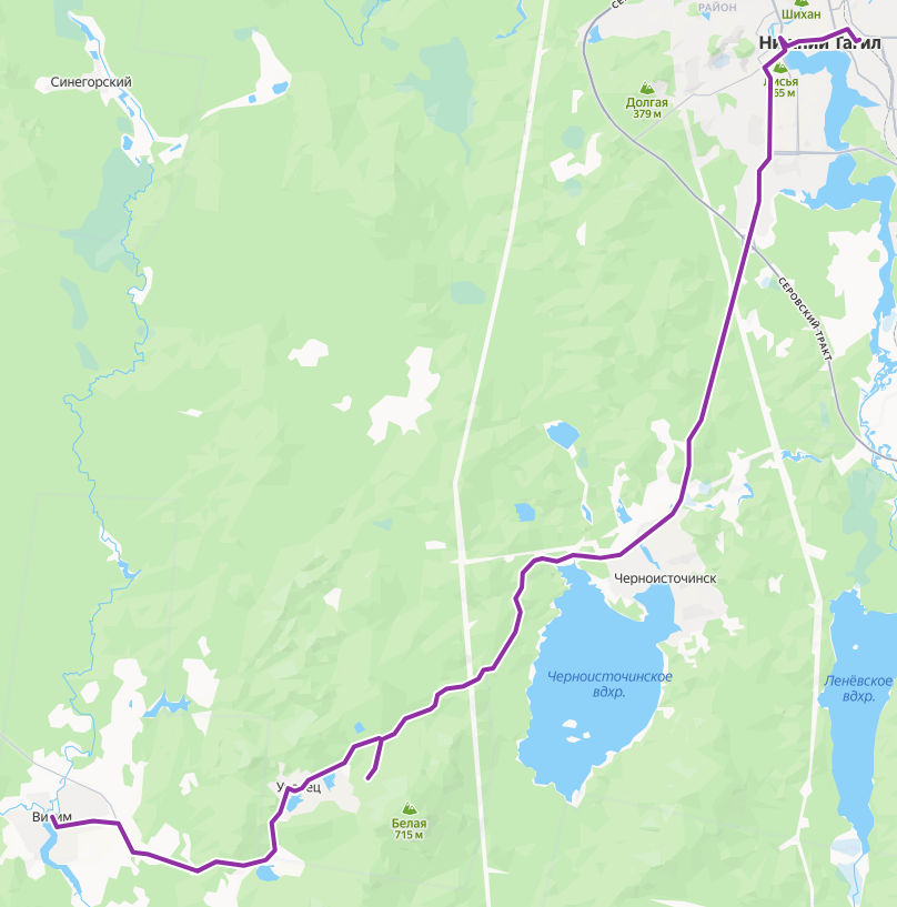 Нижний Тагил → Висим ≈ 54,4 км