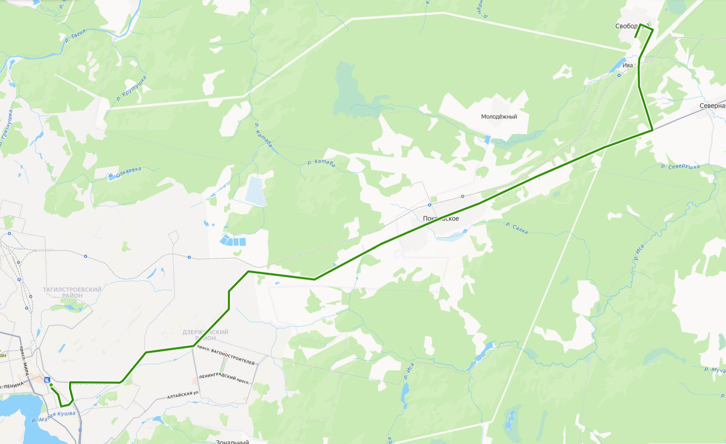 Нижний Тагил → Свободный ≈ 34,95 км