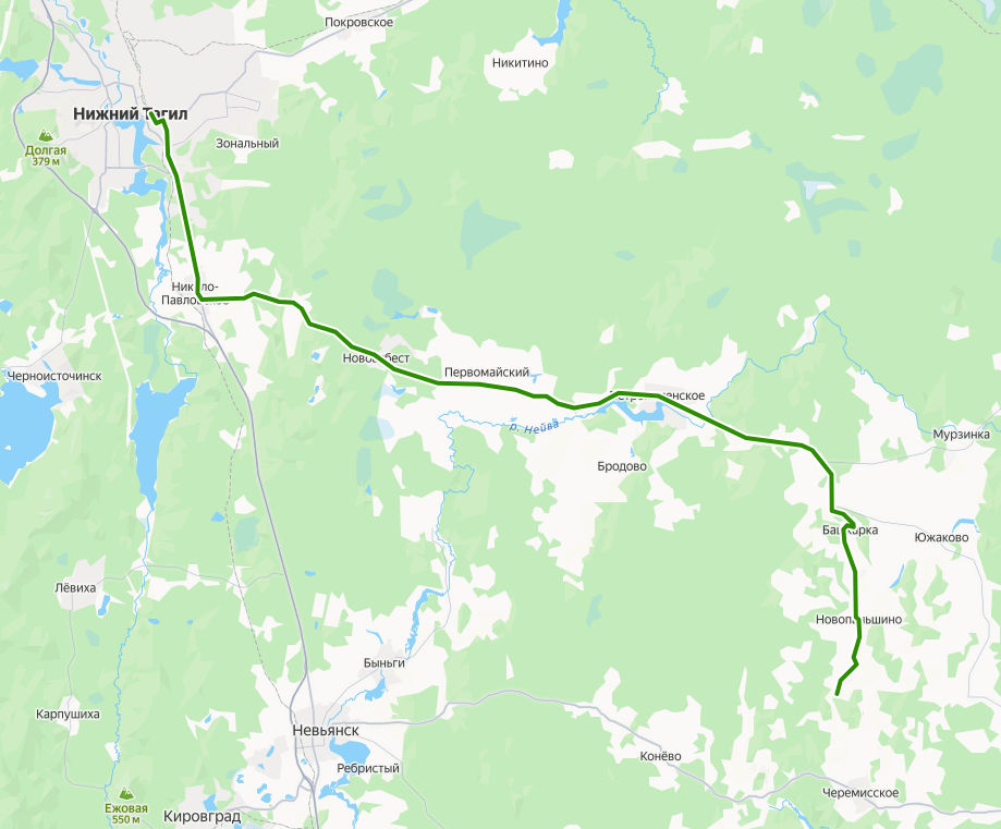 дер. Маркова → Нижний Тагил ≈ 89,35 км