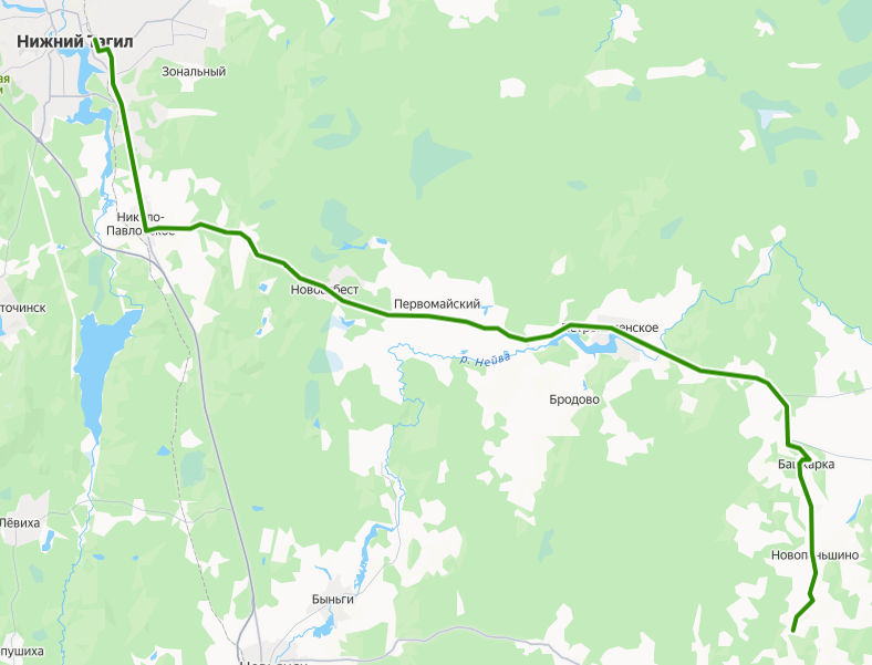 Нижний Тагил → дер. Маркова ≈ 89,75 км