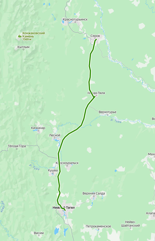 Серов → Нижний Тагил ≈ 218,25 км