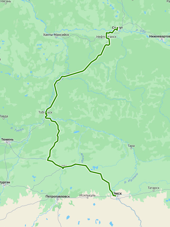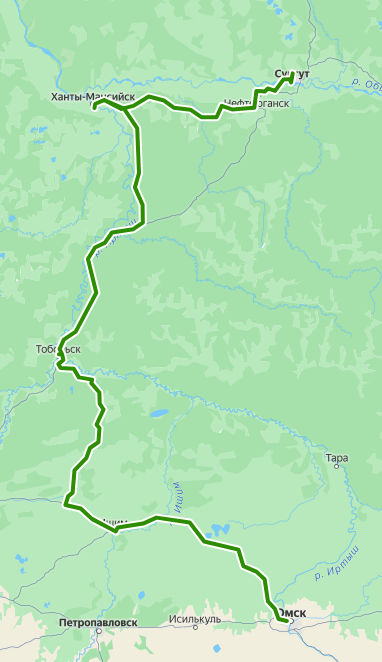 Маршрут автобуса 8095 Омск - Сургут