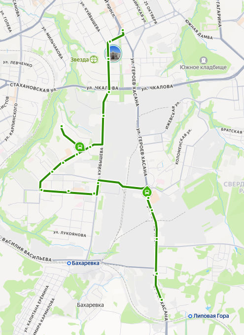 мкр. Липовая Гора → Комсомольская площадь ≈ 11,4 км