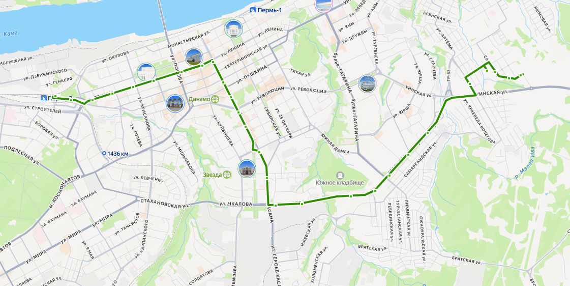 Станция Пермь-2 → ул. Сапфирная ≈ 14,66 км