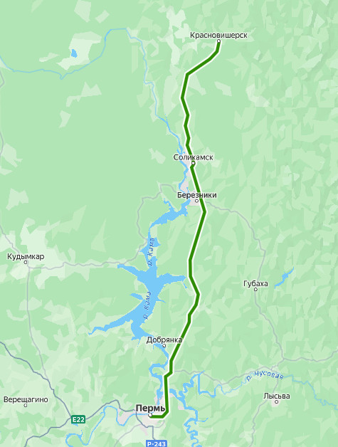 Пермь → Красновишерск ≈ 315,6 км