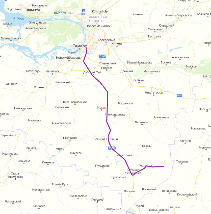 КОСТИНО → Исток → Кинзягулово → Совхоз Красный Октябрь → Имелеевка → Украинка → Лесная улица → Большая Черниговка, Кассовый пункт → пос. Железнодорожников → Большая Черниговка → Августовка → поворот на Пекилянку → поворот на Кобзевку → поворот на Тамбовку → поворот на Большую Глушицу → поворот на Новопавловку → поворот на совхоз Парижская Коммуна → Ледяйка → поворот на Александровку → поворот на совхоз Правда → Подъем-Михайловка → поворот на Яблоновый Овраг → Ровно-Владимировка → Дубовый Умет → Чугунов овраг → поворот на Самарский → поворот на АГЛОС → Придорожный → Сельскохозяйственная ярмарка → Автостанция Аврора → Дом печати → САМАРА, Центральный автовокзал