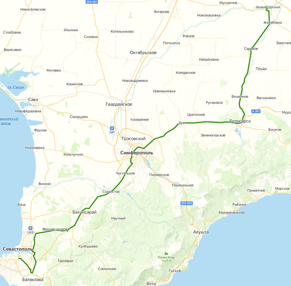 Севастополь → Белогорск → Нижнегорский ≈ 177 км