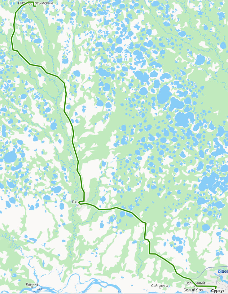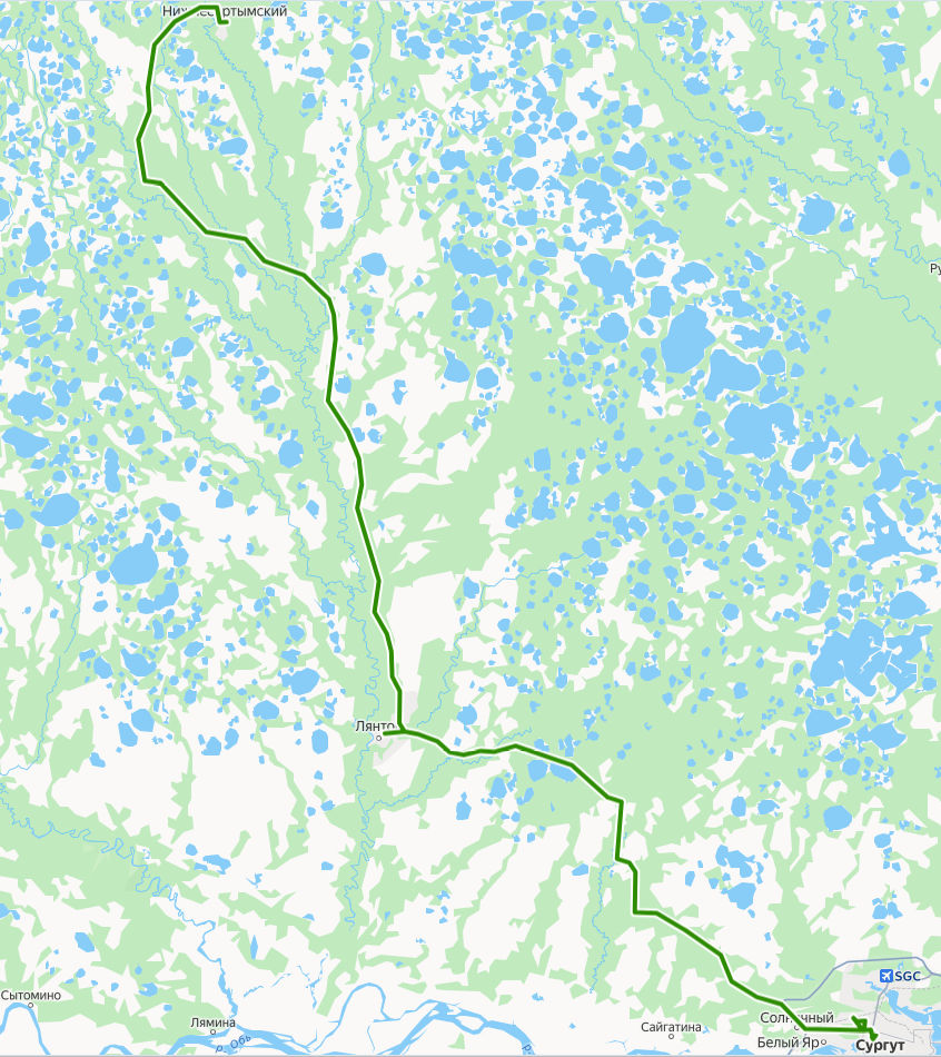Сургут → Нижнесортымский ≈ 213,05 км