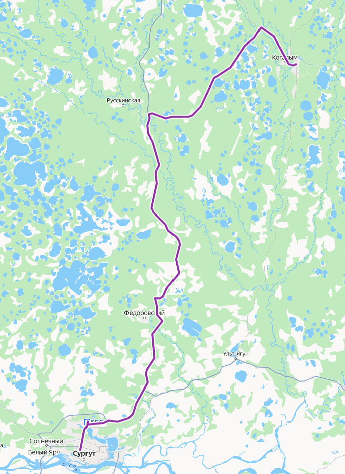 Когалым → Сургут ≈ 174,5 км