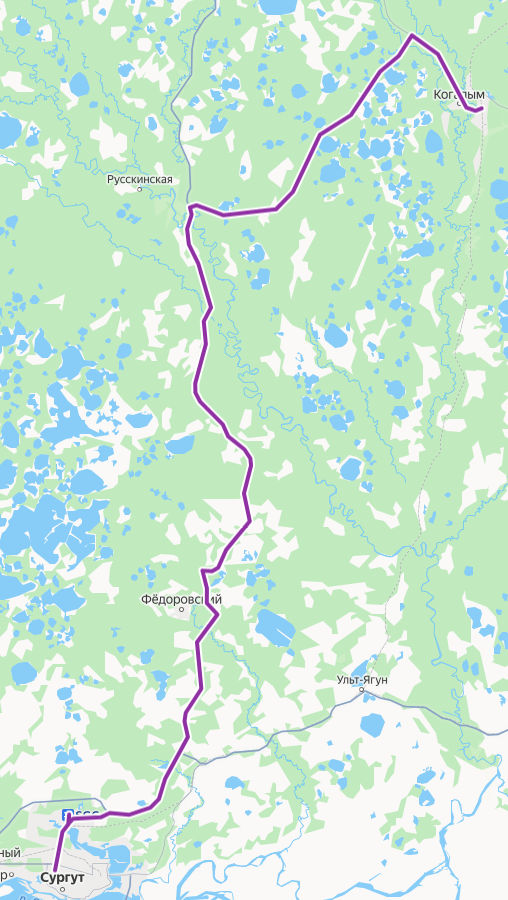 Сургут → Когалым ≈ 175,55 км