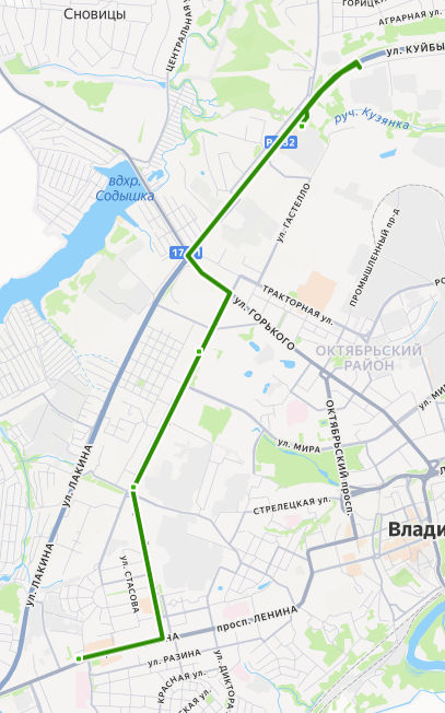 пр-т ЛЕНИНА → ул. Красноармейская → ул. Белоконской → Река Содышка → ВСК Терминал → ТК ИВАНОВСКИЕ МАНУФАКТУРЫ